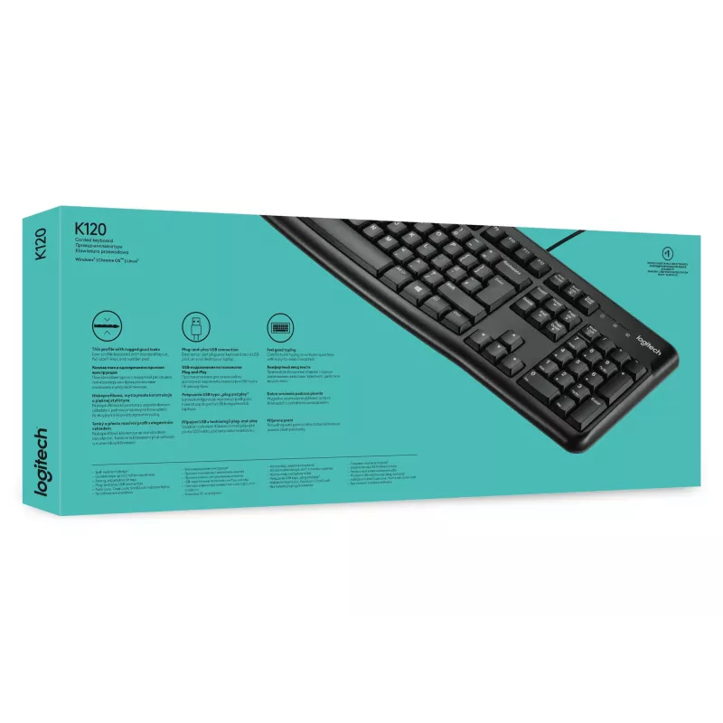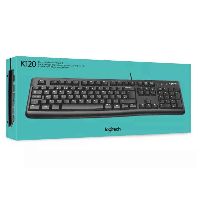 - LOGITECH KEYBOARD K120 FOR BUSINESS. KEYBOARD FORM FACTOR: FULL-SIZE (100%). KEYBOARD STYLE: STRAIGHT. CONNECTIVITY TECHNOLOGY: WIRED, DEVICE INTERFACE: USB, KEYBOARD LAYOUT: QWERTY. CABLE LENGTH: 1.5 M. RECOMMENDED USAGE: OFFICE. PRODUCT COLOUR: BLACK