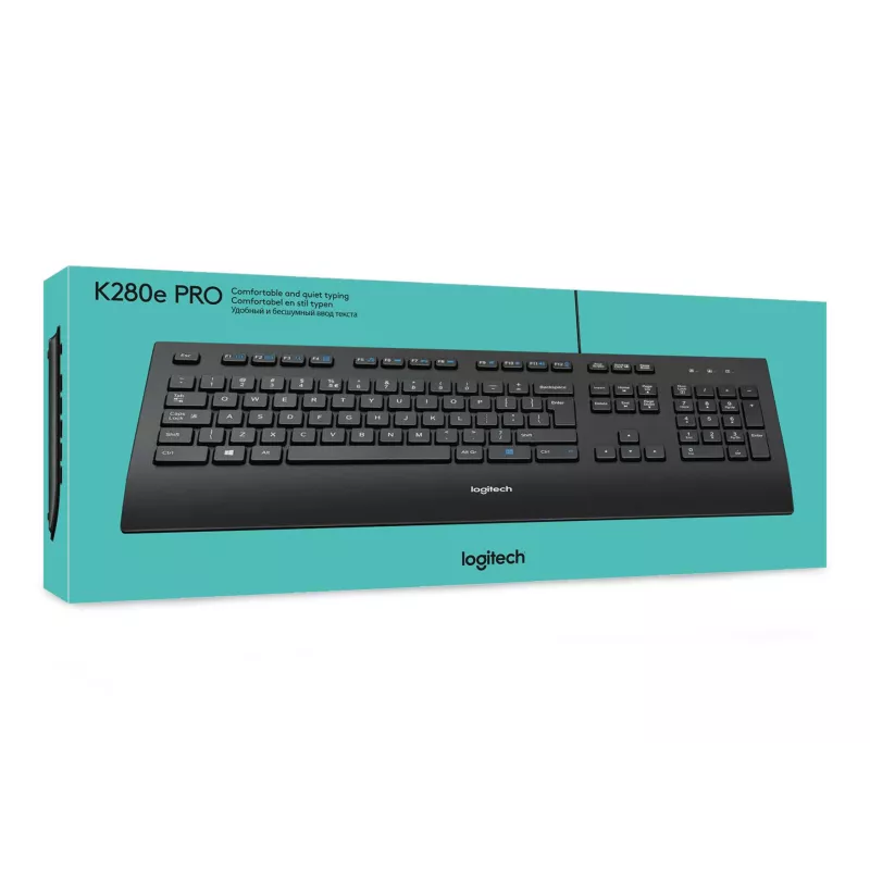- LOGITECH KEYBOARD K280E FOR BUSINESS. KEYBOARD FORM FACTOR: FULL-SIZE (100%). KEYBOARD STYLE: STRAIGHT. CONNECTIVITY TECHNOLOGY: WIRED, DEVICE INTERFACE: USB, KEYBOARD LAYOUT: QWERTY. WRIST REST. RECOMMENDED USAGE: OFFICE. PRODUCT COLOUR: BLACK