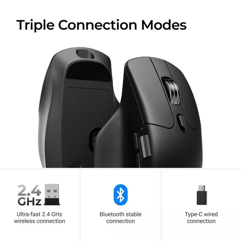 Connectivity technology Wired & Wireless , Device interface RF Wireless + Bluetooth + USB Type-C , Purpose Universal , Optical , 30000 DPI , Scroll type Wheel , Black , Power source Batteries/Cable , Weight 86 g