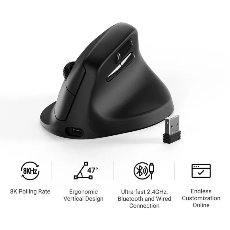 - KEYCHRON M5. FORM FACTOR: RIGHT-HAND, VERTICAL DESIGN. MOVEMENT DETECTION TECHNOLOGY: OPTICAL, DEVICE INTERFACE: RF WIRELESS + BLUETOOTH + USB TYPE-C, MOVEMENT RESOLUTION: 30000 DPI, BUTTONS TYPE: PRESSED BUTTONS, SCROLL TYPE: WHEEL. POWER SOURCE: BATTERI
