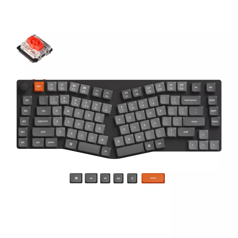 - KEYCHRON K15 MAX. KEYBOARD FORM FACTOR: 75%. KEYBOARD STYLE: CURVED. CONNECTIVITY TECHNOLOGY: WIRED & WIRELESS, DEVICE INTERFACE: USB + RF WIRELESS + BLUETOOTH, KEYBOARD KEY SWITCH: MECHANICAL, KEYBOARD LAYOUT: QWERTY, KEYBOARD NUMBER OF KEYS: 90. BACKLIG