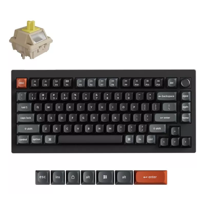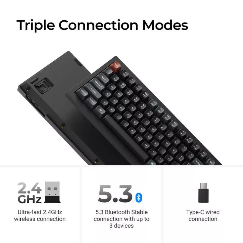 - KEYCHRON V1 ULTRA 8K. KEYBOARD FORM FACTOR: 75%. KEYBOARD STYLE: STRAIGHT. CONNECTIVITY TECHNOLOGY: WIRED & WIRELESS, DEVICE INTERFACE: BLUETOOTH, KEYBOARD KEY SWITCH: MECHANICAL, KEYBOARD LAYOUT: QWERTY. BACKLIGHT TYPE: RGB LED. RECOMMENDED USAGE: UNIVER