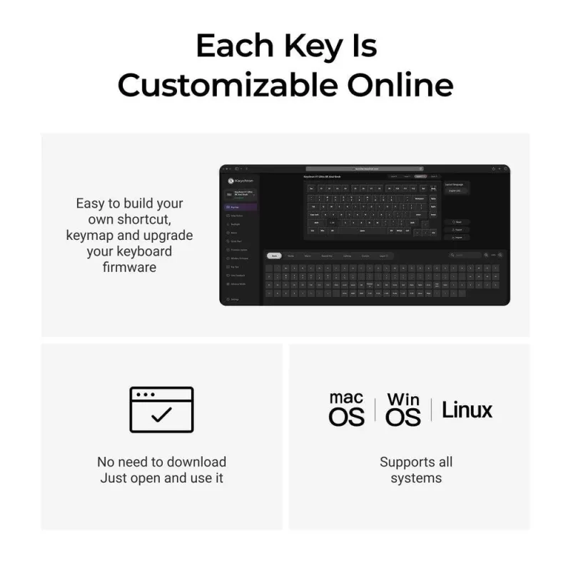 - KEYCHRON V1 ULTRA 8K. KEYBOARD FORM FACTOR: 75%. KEYBOARD STYLE: STRAIGHT. CONNECTIVITY TECHNOLOGY: WIRED & WIRELESS, DEVICE INTERFACE: BLUETOOTH, KEYBOARD KEY SWITCH: MECHANICAL, KEYBOARD LAYOUT: QWERTY. BACKLIGHT TYPE: RGB LED. RECOMMENDED USAGE: UNIVER