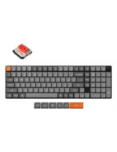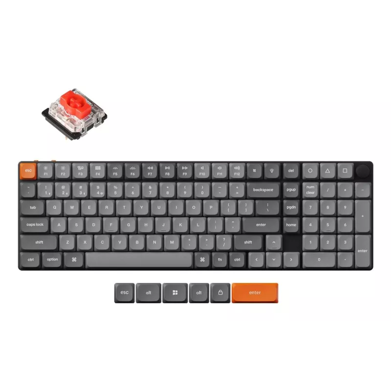 - KEYCHRON K17 MAX QMK. KEYBOARD FORM FACTOR: 75%. KEYBOARD STYLE: STRAIGHT. CONNECTIVITY TECHNOLOGY: WIRED & WIRELESS, DEVICE INTERFACE: USB + RF WIRELESS + BLUETOOTH, KEYBOARD KEY SWITCH: MECHANICAL, KEYBOARD NUMBER OF KEYS: 104. BACKLIGHT TYPE: RGB LE