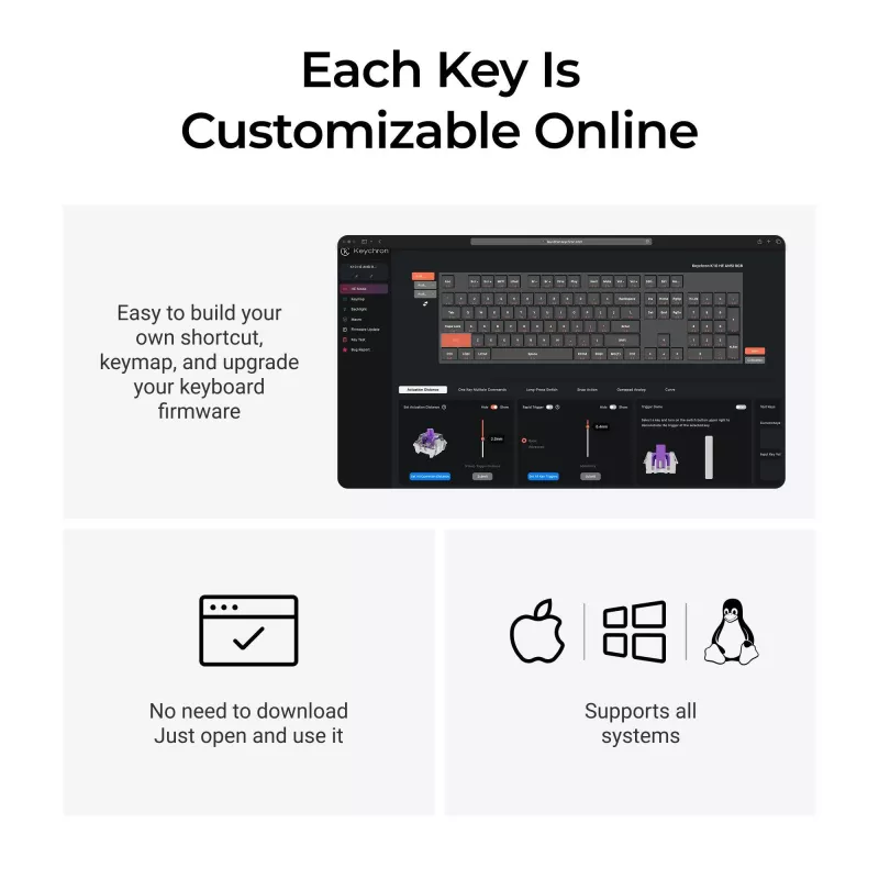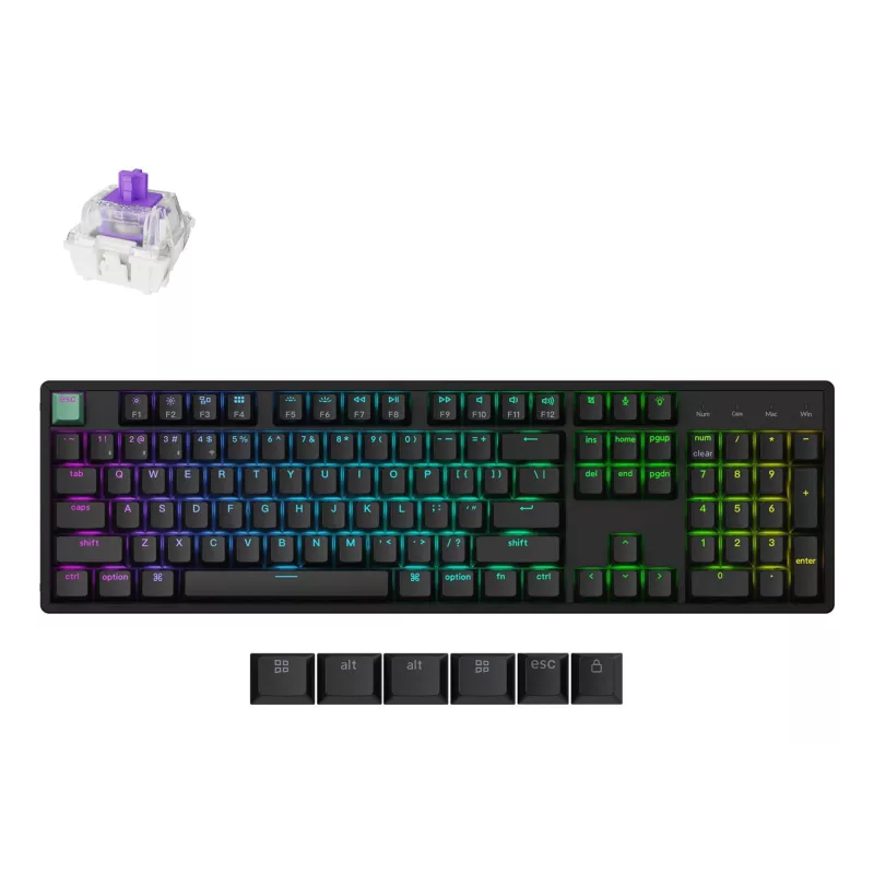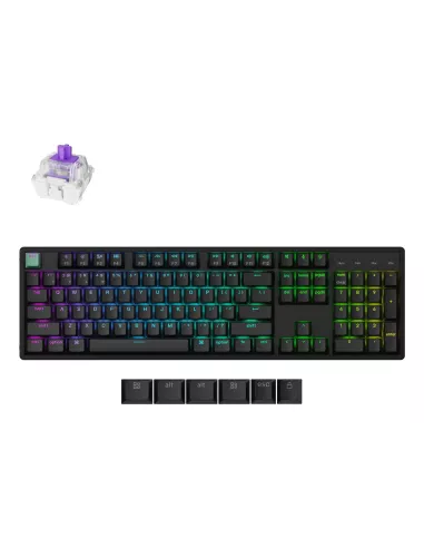 - KEYCHRON K10 HE. KEYBOARD FORM FACTOR: FULL-SIZE (100%), CONNECTIVITY TECHNOLOGY: WIRED & WIRELESS, DEVICE INTERFACE: USB + RF WIRELESS + BLUETOOTH, KEYBOARD KEY SWITCH: MAGNETIC-MECHANICAL KEY SWITCH, KEYBOARD LAYOUT: QWERTY. BACKLIGHT TYPE: RGB LED. REC