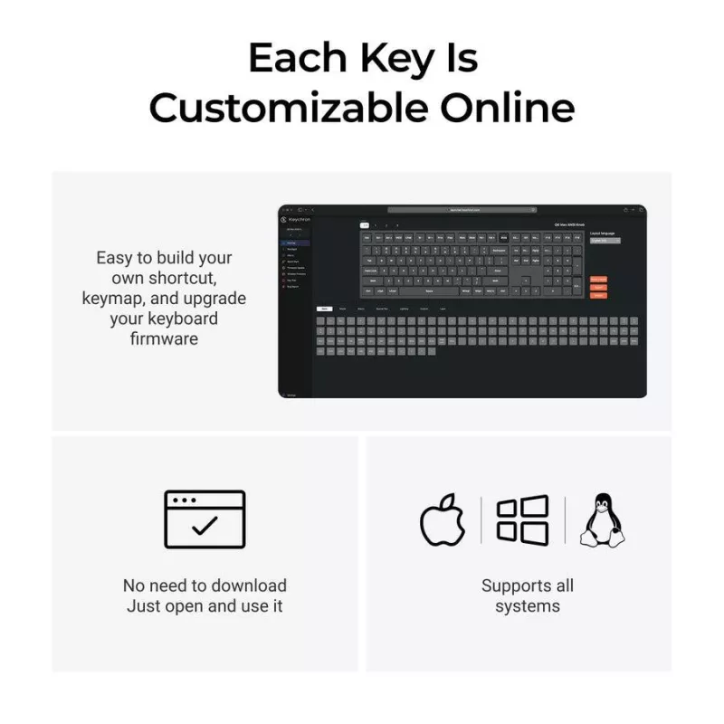 - KEYCHRON Q6 MAX. KEYBOARD FORM FACTOR: FULL-SIZE (100%). KEYBOARD STYLE: STRAIGHT. CONNECTIVITY TECHNOLOGY: WIRED & WIRELESS, DEVICE INTERFACE: USB + RF WIRELESS + BLUETOOTH, KEYBOARD KEY SWITCH: MECHANICAL, KEYBOARD LAYOUT: QWERTY, KEYBOARD NUMBER OF KEY