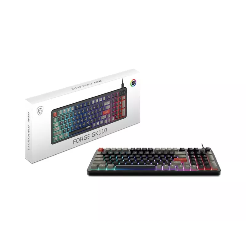 - MSI FORGE GK110. KEYBOARD FORM FACTOR: FULL-SIZE (100%), CONNECTIVITY TECHNOLOGY: WIRED, DEVICE INTERFACE: USB, KEYBOARD KEY SWITCH: MEMBRANE, KEYBOARD LAYOUT: QWERTY, KEYBOARD NUMBER OF KEYS: 97. BACKLIGHT TYPE: RGB LED. CABLE LENGTH: 1.5 M. RECOMMENDED