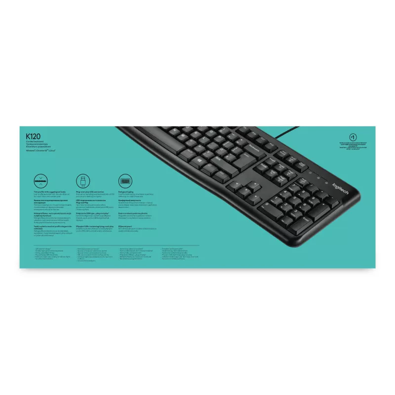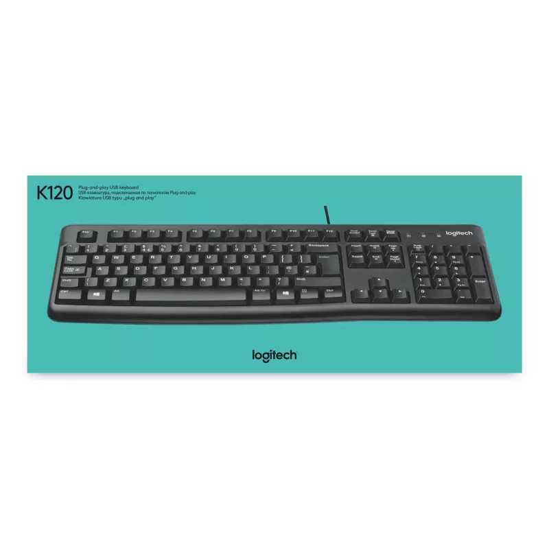 - LOGITECH KEYBOARD K120 FOR BUSINESS. KEYBOARD FORM FACTOR: FULL-SIZE (100%). KEYBOARD STYLE: STRAIGHT. CONNECTIVITY TECHNOLOGY: WIRED, DEVICE INTERFACE: USB, KEYBOARD LAYOUT: QWERTY. CABLE LENGTH: 1.5 M. RECOMMENDED USAGE: OFFICE. PRODUCT COLOUR: BLACK