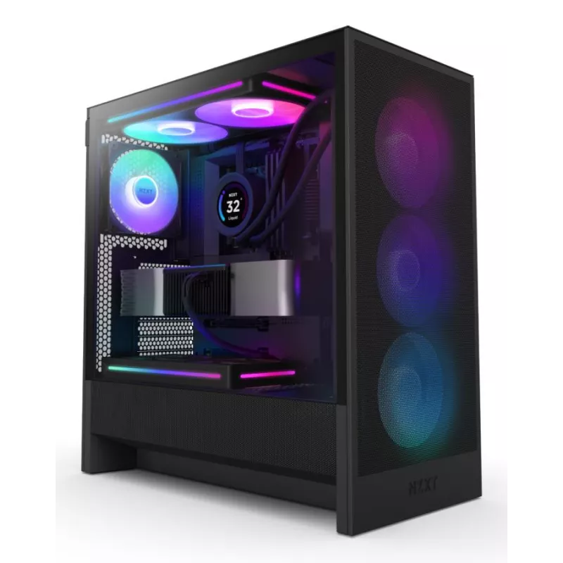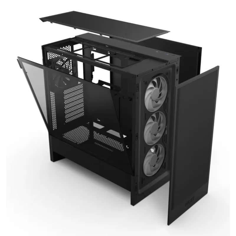 - NZXT H5 FLOW RGB. FORM FACTOR: MIDI TOWER, TYPE: PC, PRODUCT COLOUR: BLACK. FRONT FANS INSTALLED: 3X 120 MM, FRONT FANS DIAMETERS SUPPORTED: 120,140 MM, REAR FANS INSTALLED: 1X 120 MM. SUPPORTED HDD SIZES: 2.5,3.5". WIDTH: 225 MM, DEPTH: 430 MM, HEIGHT: 4