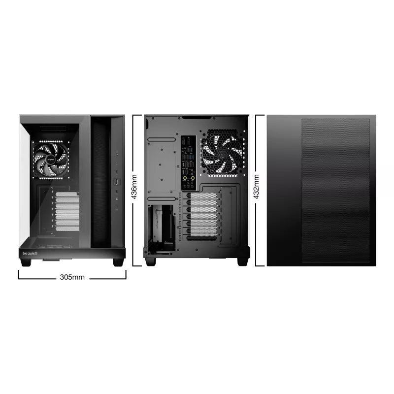 BE QUIET! LIGHT BASE 500. FORM FACTOR: MIDI TOWER, TYPE: PC, PRODUCT COLOUR: BLACK. SUPPORTED POWER SUPPLY FORM FACTORS: ATX, PS2. SIDE FANS INSTALLED: 3X 120 MM, SIDE FANS DIAMETERS SUPPORTED: 120 MM, REAR FANS INSTALLED: 1X 120 MM. SUPPORTED HDD SIZES: