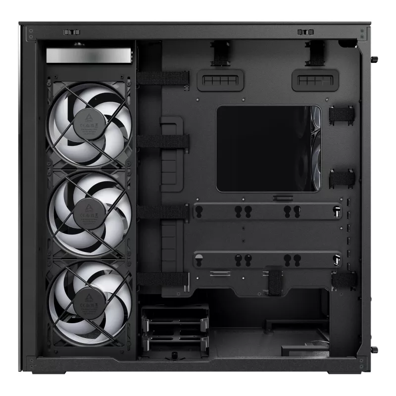 - ARCTIC XTENDER (BLACK) PREMIUM E-ATX PC CASE. FORM FACTOR: MIDI TOWER, TYPE: PC, PRODUCT COLOUR: BLACK. POWER SUPPLY LOCATION: BOTTOM, SUPPORTED POWER SUPPLY FORM FACTORS: ATX. SIDE FANS INSTALLED: 3X 140 MM, SIDE FANS DIAMETERS SUPPORTED: 120,140 MM, REA
