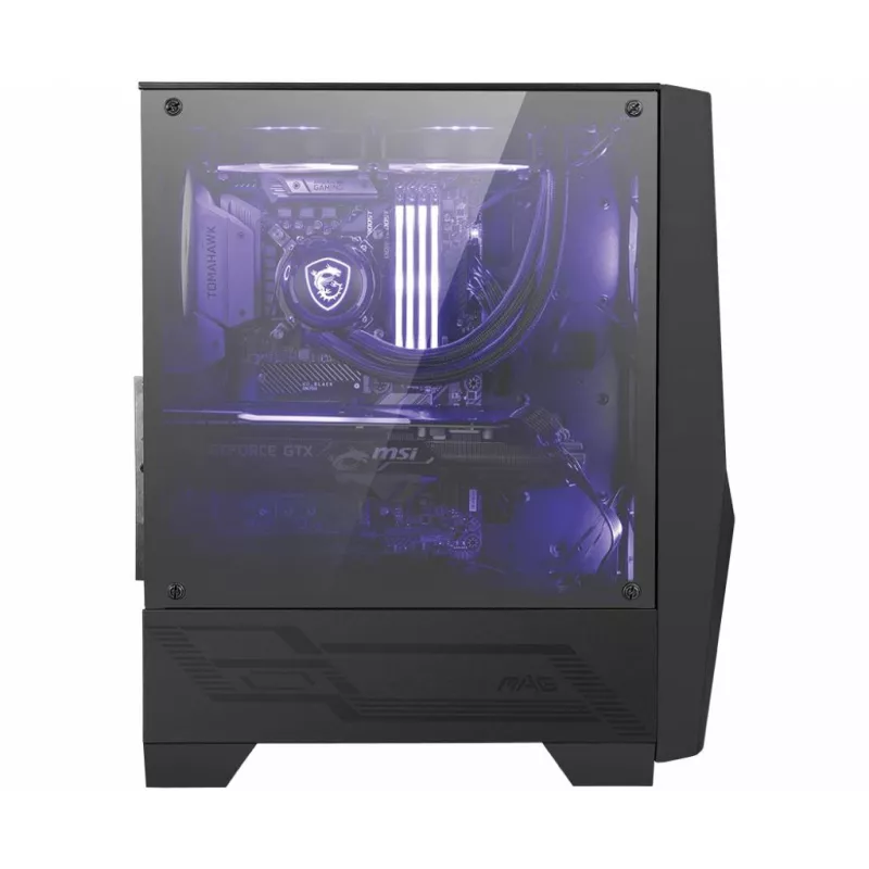 - MSI MAG FORGE 100M MID TOWER GAMING COMPUTER CASE 'BLACK, 2X 120MM RGB PWM FAN, 1X 120MM FAN, 1-6 RGB HUB, TEMPERED GLASS PANEL, ATX, MATX, MINI-ITX'. FORM FACTOR: MIDI TOWER, TYPE: PC, PRODUCT COLOUR: BLACK, TRANSPARENT. POWER SUPPLY LOCATION: BOTTOM, SU