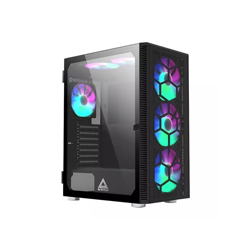 - MONTECH X3 GLASS. FORM FACTOR: MIDI TOWER, TYPE: PC, PRODUCT COLOUR: BLACK. POWER SUPPLY LOCATION: BOTTOM. FRONT FANS INSTALLED: 3X 140 MM, FRONT FANS DIAMETERS SUPPORTED: 120,140 MM, REAR FANS INSTALLED: 1X 120 MM. SUPPORTED HDD SIZES: 3.5", SSD FORM FAC