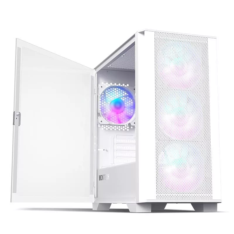 MONTECH AIR 100 ARGB. FORM FACTOR: MINI TOWER, TYPE: PC, PRODUCT COLOUR: WHITE. POWER SUPPLY LOCATION: BOTTOM, SUPPORTED POWER SUPPLY FORM FACTORS: ATX. FRONT FANS INSTALLED: 3X 120 MM, FRONT FANS DIAMETERS SUPPORTED: 120,140 MM, REAR FANS INSTALLED: 1X 1