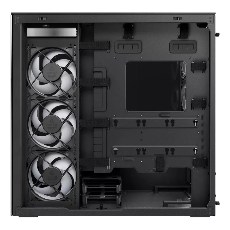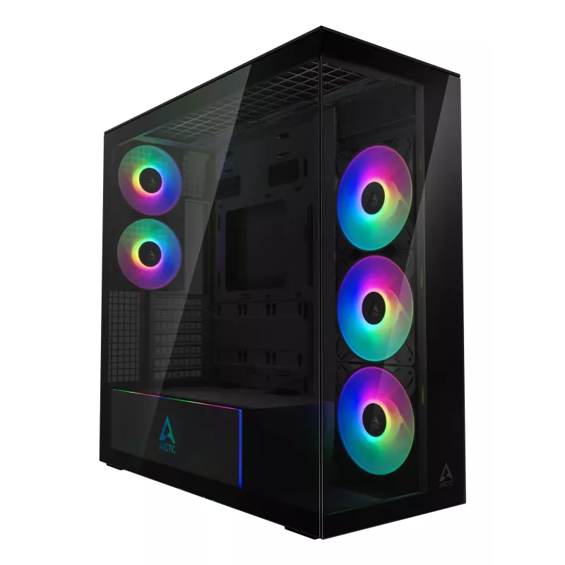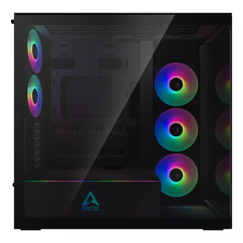 - ARCTIC XTENDER (MIRROR BLACK) PREMIUM E-ATX PC CASE. FORM FACTOR: MIDI TOWER, TYPE: PC, PRODUCT COLOUR: BLACK. POWER SUPPLY LOCATION: BOTTOM, SUPPORTED POWER SUPPLY FORM FACTORS: ATX. SIDE FANS INSTALLED: 3X 140 MM, SIDE FANS DIAMETERS SUPPORTED: 120,140