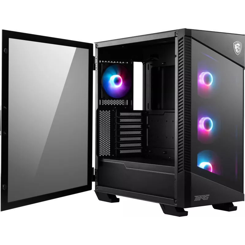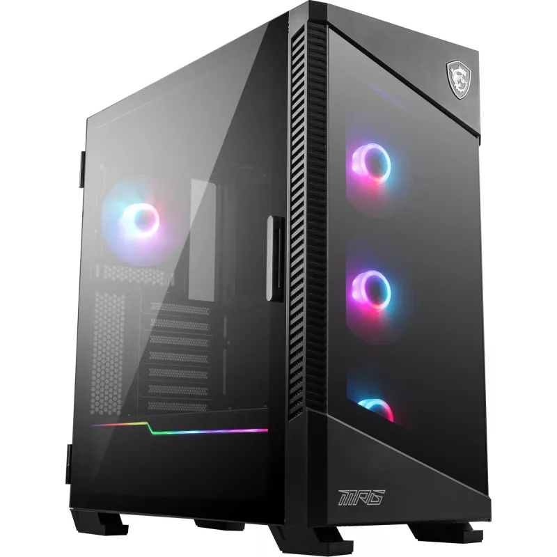 MSI MPG VELOX 100R MID TOWER GAMING COMPUTER CASE 'BLACK, 4X 120MM ARGB FANS, 1-6 ARGB HUB, ARGB LIGHT STRIP, USB TYPE-C, TEMPERED GLASS, CENTER, E-ATX, ATX, MATX, MINI-ITX'. FORM FACTOR: MIDI TOWER, TYPE: PC, PRODUCT COLOUR: BLACK. FRONT FANS INSTALLED: