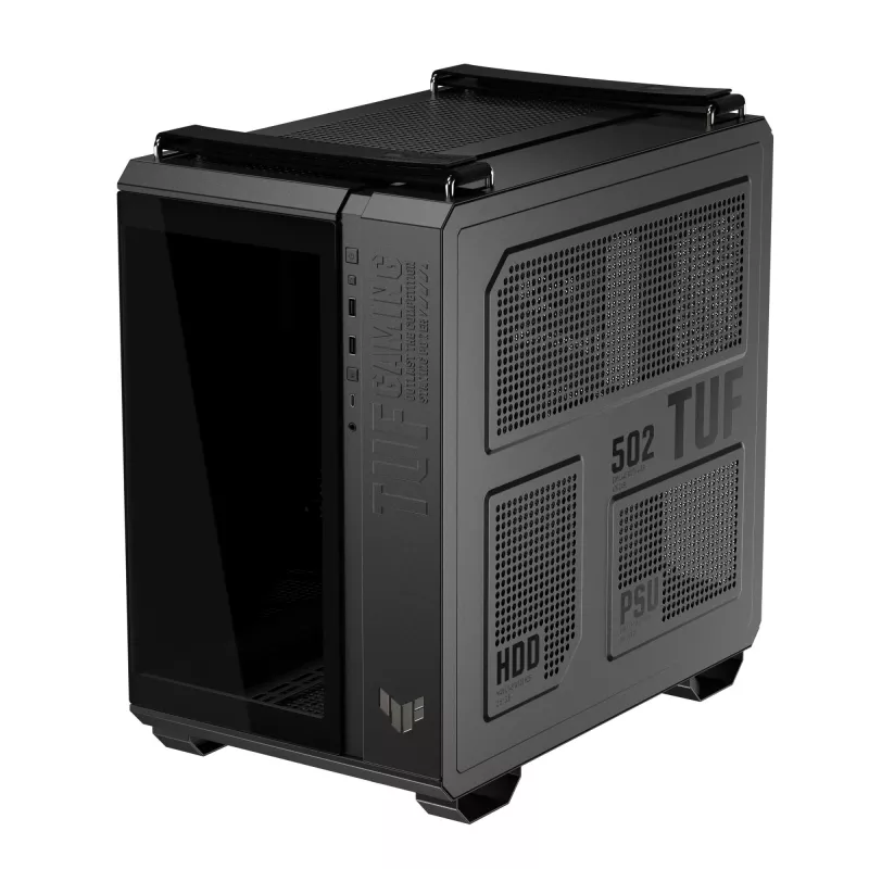 - ASUS TUF GAMING GT502 HORIZON TG ARGB BLACK. FORM FACTOR: MIDI TOWER, TYPE: PC, PRODUCT COLOUR: BLACK. SIDE FANS INSTALLED: 3X 120 MM, REAR FANS INSTALLED: 1X 120 MM, REAR FANS DIAMETERS SUPPORTED: 120 MM. SUPPORTED HDD SIZES: 2.5,3.5". WIDTH: 285 MM, DEP