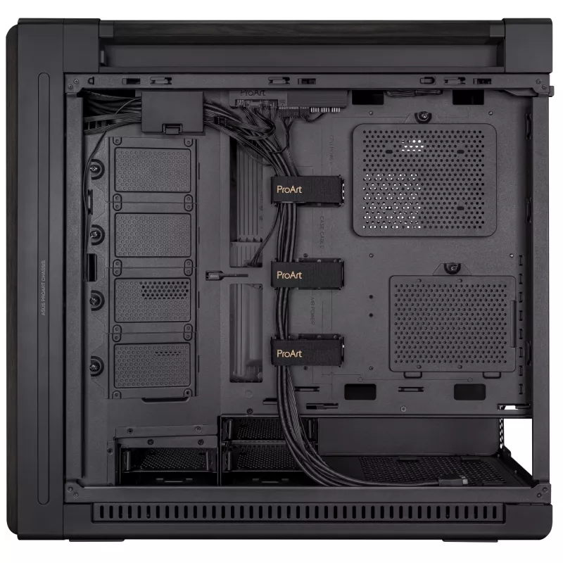 - ASUS PROART PA602 WOOD EDITION METAL PANEL. FORM FACTOR: MIDI TOWER, TYPE: PC, PRODUCT COLOUR: BLACK. FRONT FANS INSTALLED: 2X 200 MM, FRONT FANS DIAMETERS SUPPORTED: 200 MM, REAR FANS INSTALLED: 1X 140 MM. SUPPORTED HDD SIZES: 2.5,3.5". WIDTH: 245 MM, DE