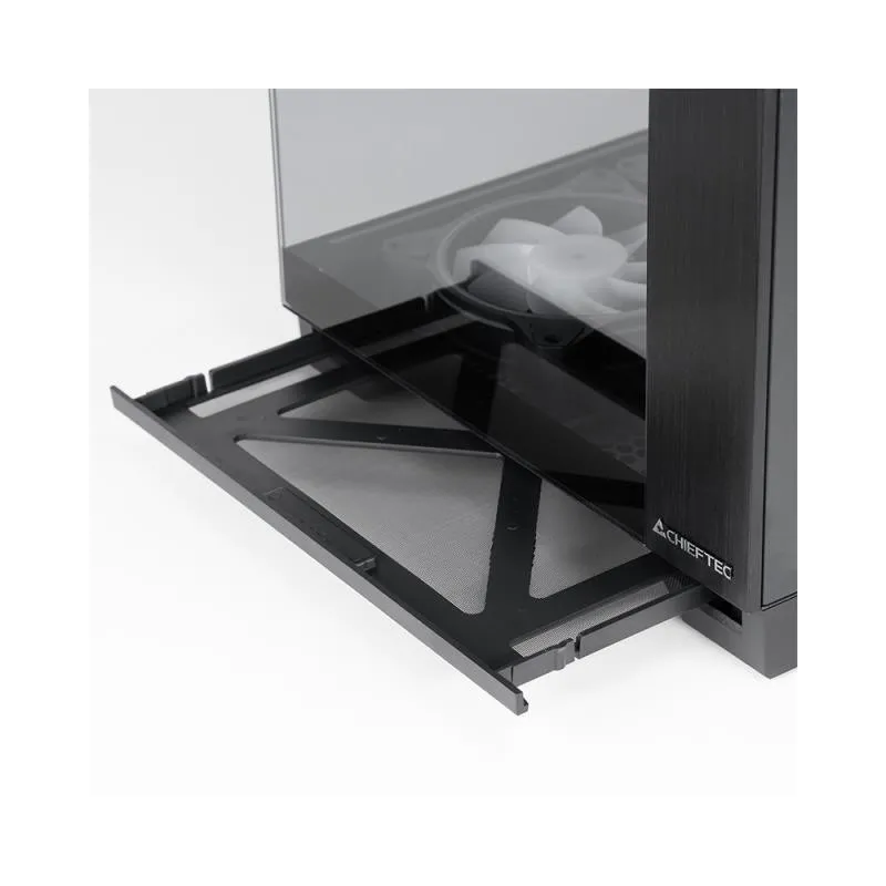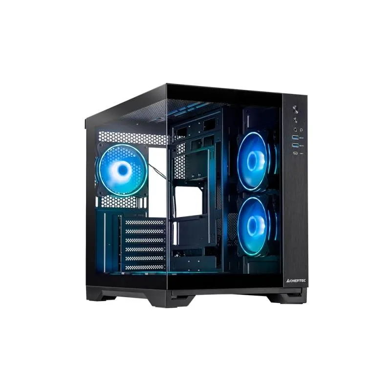- CHIEFTEC VISIO GM-30B-TG-OP SCHWARZ TEMPERED GLASS X 2. FORM FACTOR: CUBE, TYPE: PC, PRODUCT COLOUR: BLACK. SIDE FANS INSTALLED: 2X 120 MM, REAR FANS INSTALLED: 1X 120 MM, BOTTOM FANS INSTALLED: 3X 120 MM. SUPPORTED HDD SIZES: 2.5,3.5". WIDTH: 295 MM, DEP