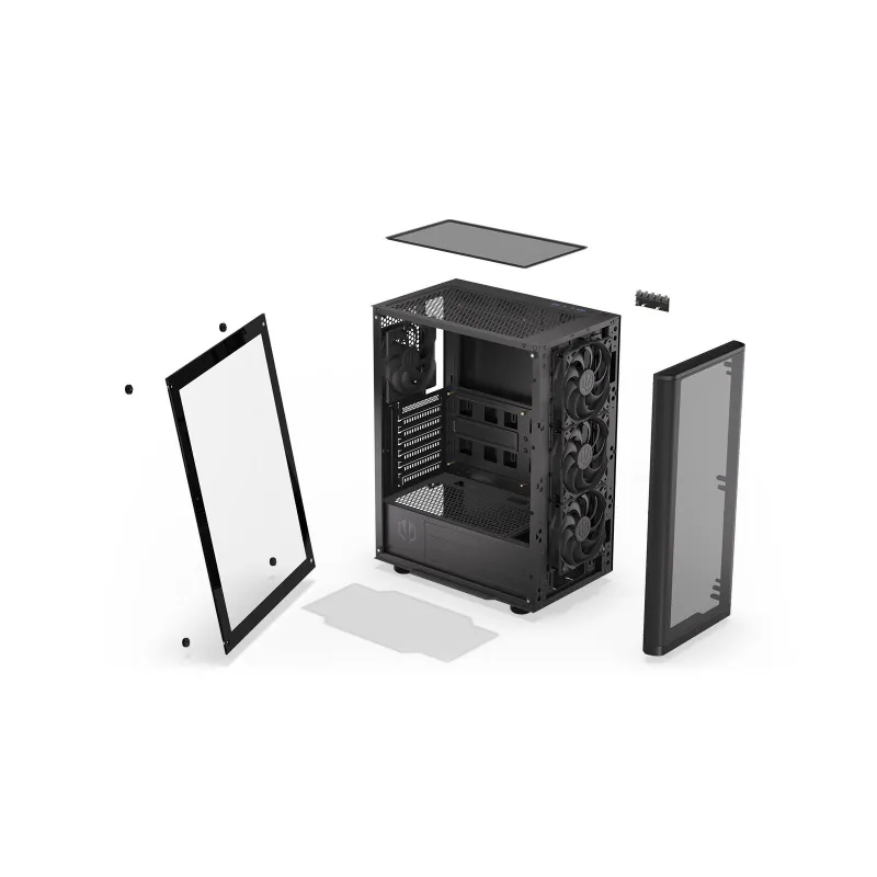 - ENDORFY VENTUM 200 AIR. FORM FACTOR: TOWER, TYPE: PC, PRODUCT COLOUR: BLACK. FRONT FANS INSTALLED: 3X 120 MM, REAR FANS INSTALLED: 1X 120 MM, FRONT RADIATOR SIZES SUPPORTED: 120,240,280,360 MM. SUPPORTED HDD SIZES: 2.5,3.5". WIDTH: 440 MM, DEPTH: 216 MM,