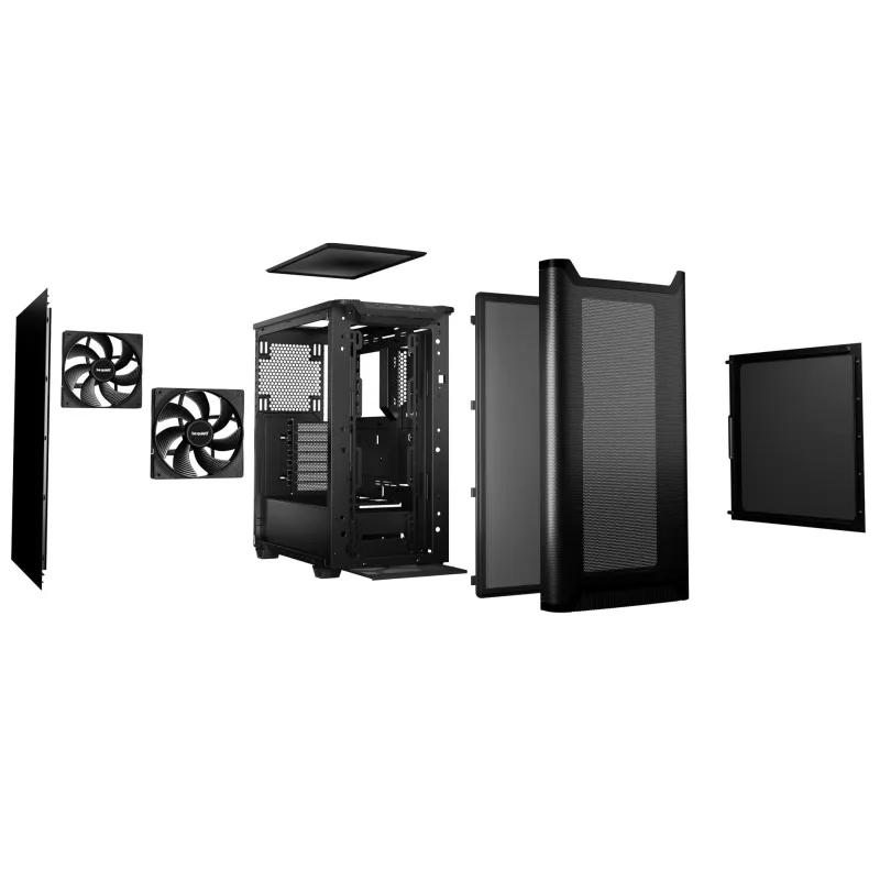 - BE QUIET! PURE BASE 501 AIRFLOW BLACK. FORM FACTOR: MIDI TOWER, TYPE: PC, PRODUCT COLOUR: BLACK. SUPPORTED POWER SUPPLY FORM FACTORS: ATX, PS2. FRONT FANS INSTALLED: 1X 140 MM, FRONT FANS DIAMETERS SUPPORTED: 120,140 MM, REAR FANS INSTALLED: 1X 140 MM. SU