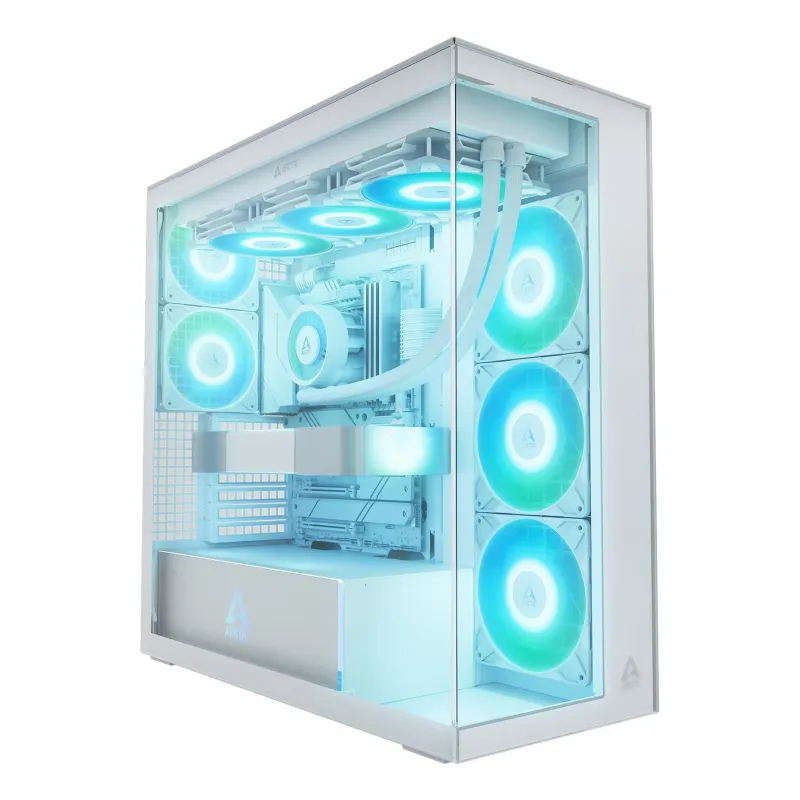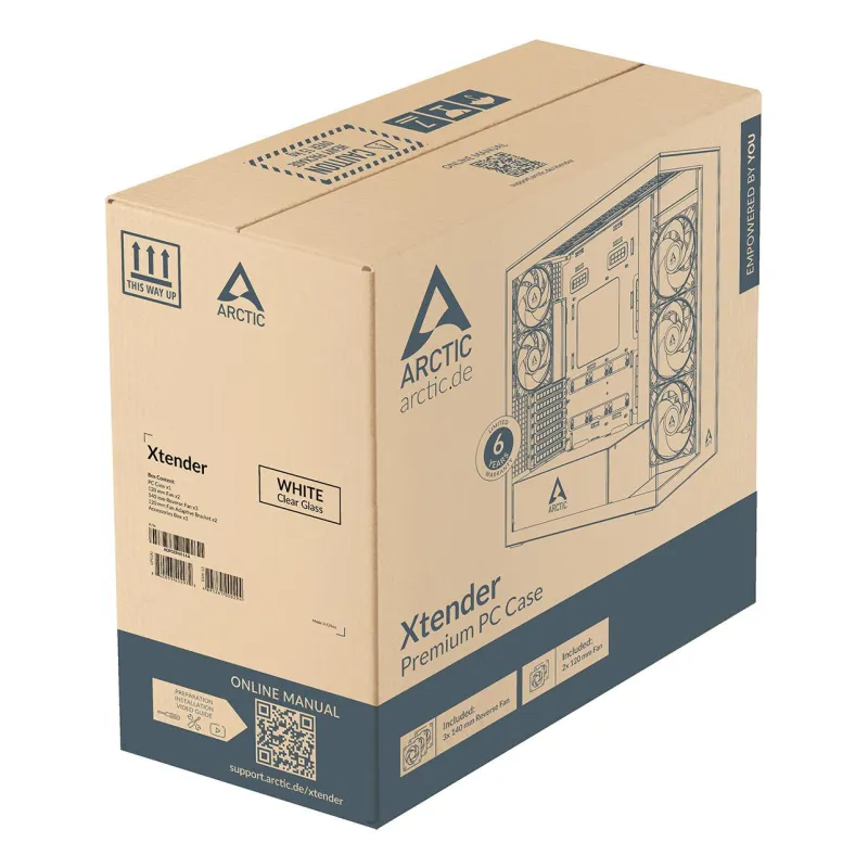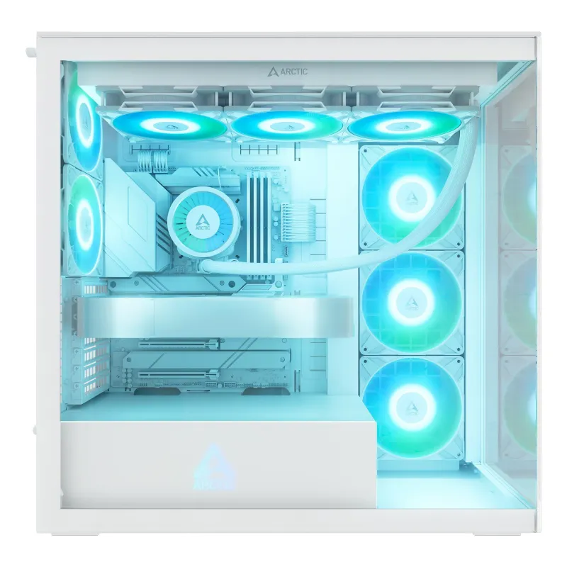 - ARCTIC XTENDER (WHITE) PREMIUM E-ATX PC CASE. FORM FACTOR: MIDI TOWER, TYPE: PC, PRODUCT COLOUR: WHITE. POWER SUPPLY LOCATION: BOTTOM, SUPPORTED POWER SUPPLY FORM FACTORS: ATX. SIDE FANS INSTALLED: 3X 140 MM, SIDE FANS DIAMETERS SUPPORTED: 120,140 MM, REA