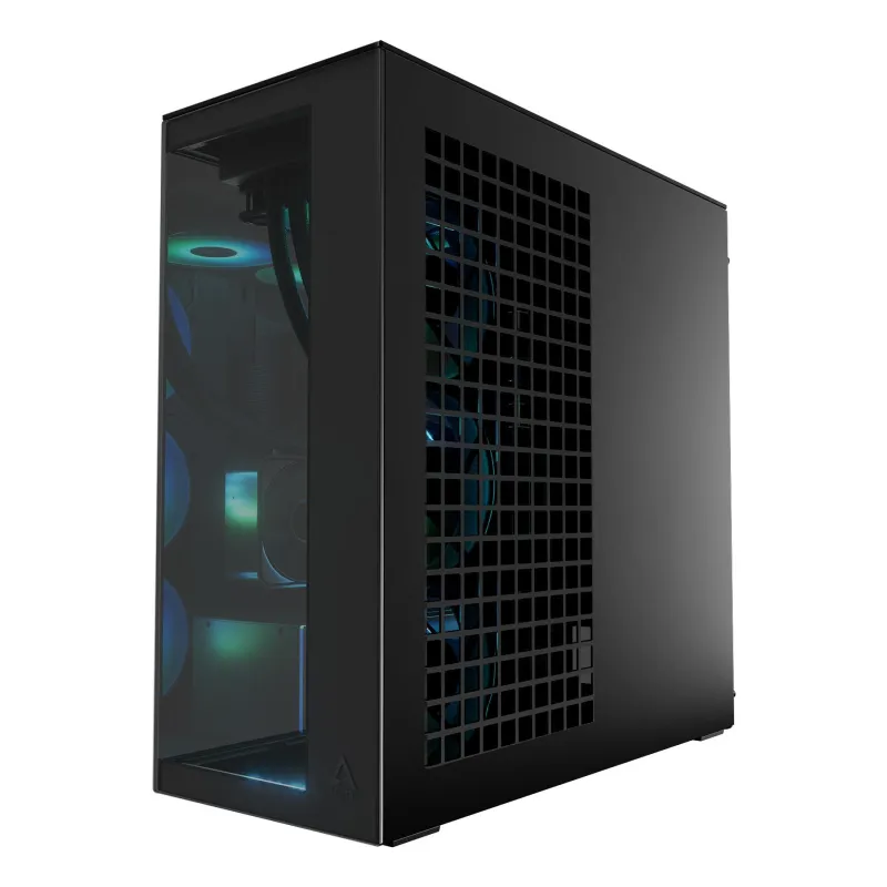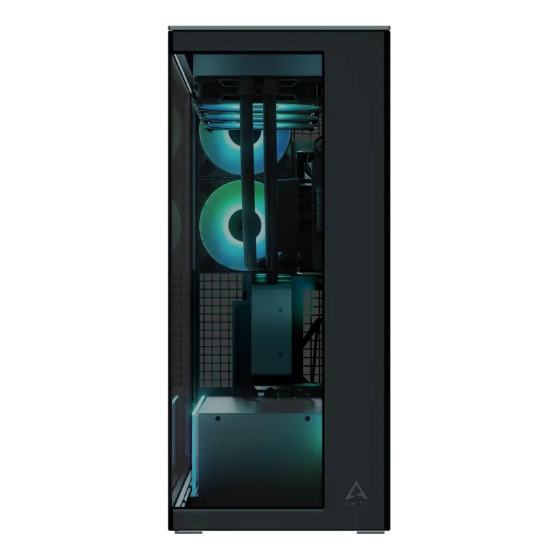 - ARCTIC XTENDER VG (BLACK) PREMIUM E-ATX PC CASE WITH VERTICAL GPU MOUNTING. FORM FACTOR: MIDI TOWER, TYPE: PC, PRODUCT COLOUR: BLACK. POWER SUPPLY LOCATION: BOTTOM, SUPPORTED POWER SUPPLY FORM FACTORS: ATX. SIDE FANS INSTALLED: 3X 140 MM, SIDE FANS DIAMET