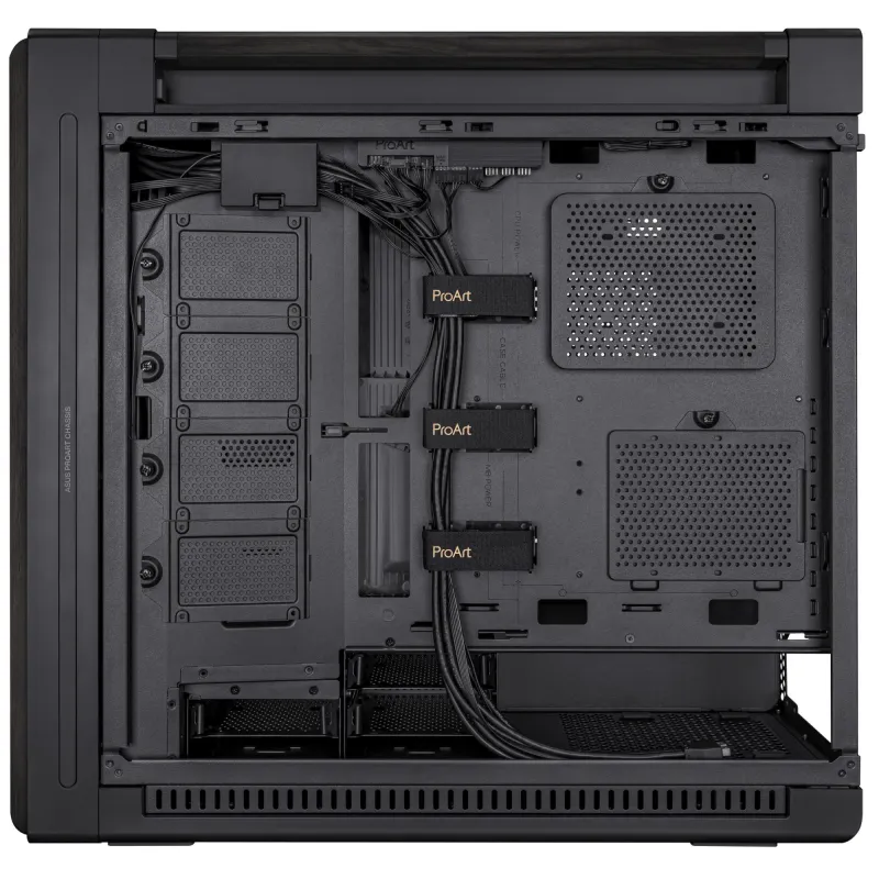 - ASUS PROART PA602 WOOD EDITION. FORM FACTOR: MIDI TOWER, TYPE: PC, PRODUCT COLOUR: BLACK. FRONT FANS INSTALLED: 2X 200 MM, FRONT FANS DIAMETERS SUPPORTED: 200 MM, REAR FANS INSTALLED: 1X 140 MM. SUPPORTED HDD SIZES: 2.5,3.5". WIDTH: 560 MM, DEPTH: 245 MM,