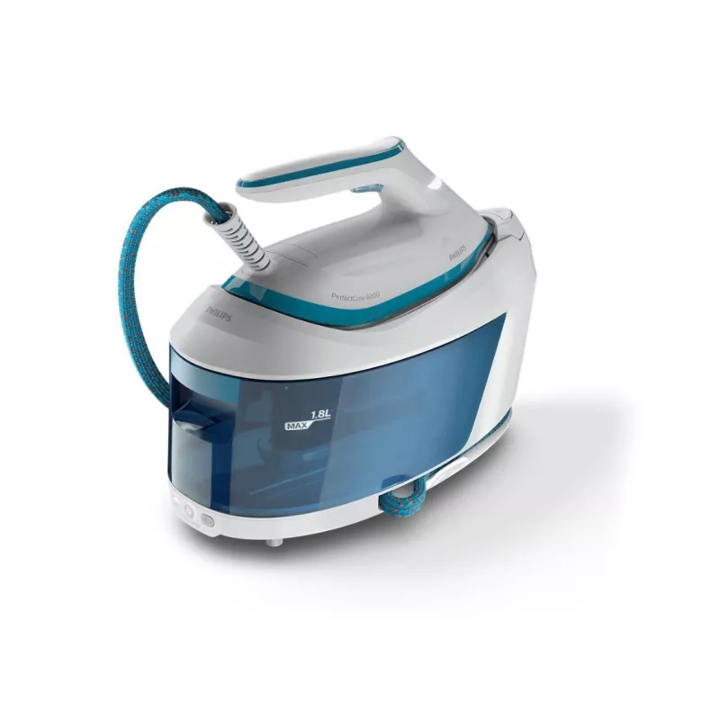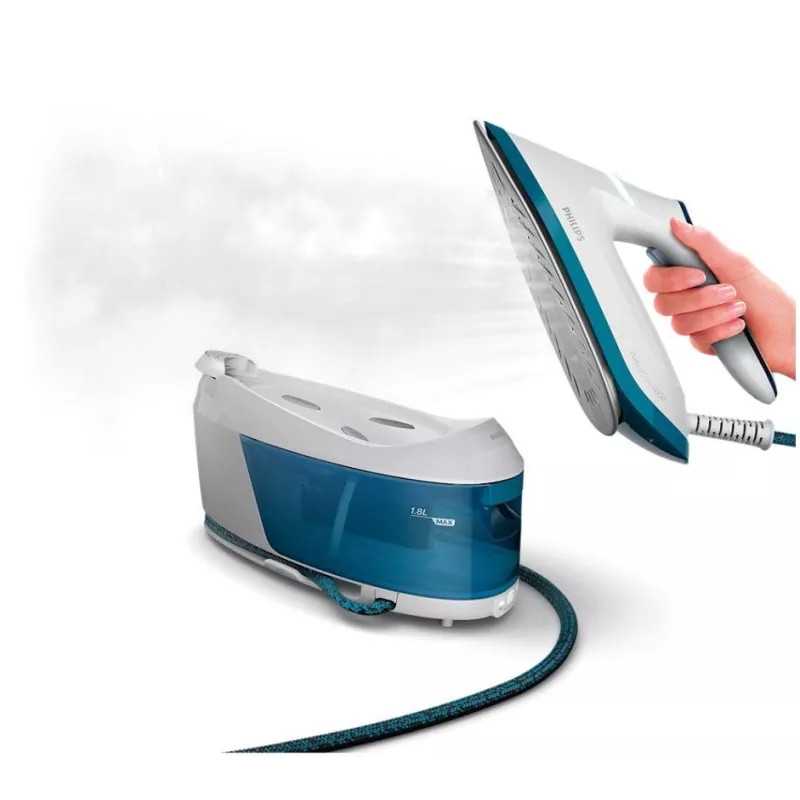Power consumption 2400 Watts , Continuous steam output 130 g/min , Steam boost 500 g/min , Water tank capacity 1.8 l , Cord length 1.65 m , Colour White / Blue , Dimensions 16.8 x 26.9 x 36.8 cm , Product Net Weight 3.4 kg