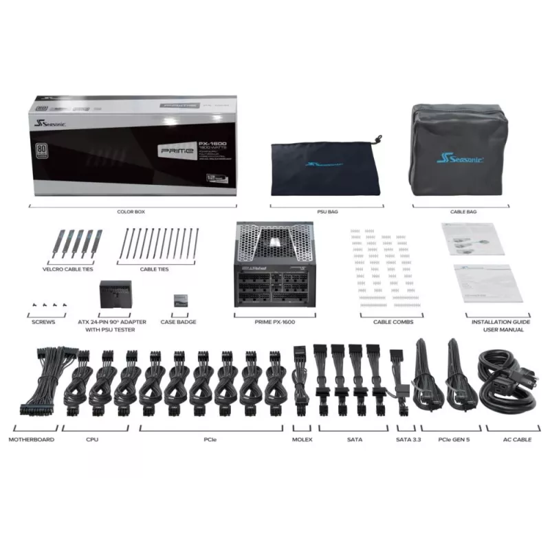Power Supply, SEASONIC, PRIME PX ATX 3.0, 1600 Watts, Efficiency 80 PLUS PLATINIUM, MTBF 100000 hours, PRIME-PX-1600-ATX30