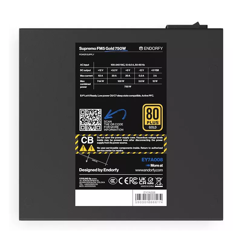Power Supply, ENDORFY, EY7A008, 750 Watts, Efficiency 80 PLUS GOLD, MTBF 100000 hours, EY7A008