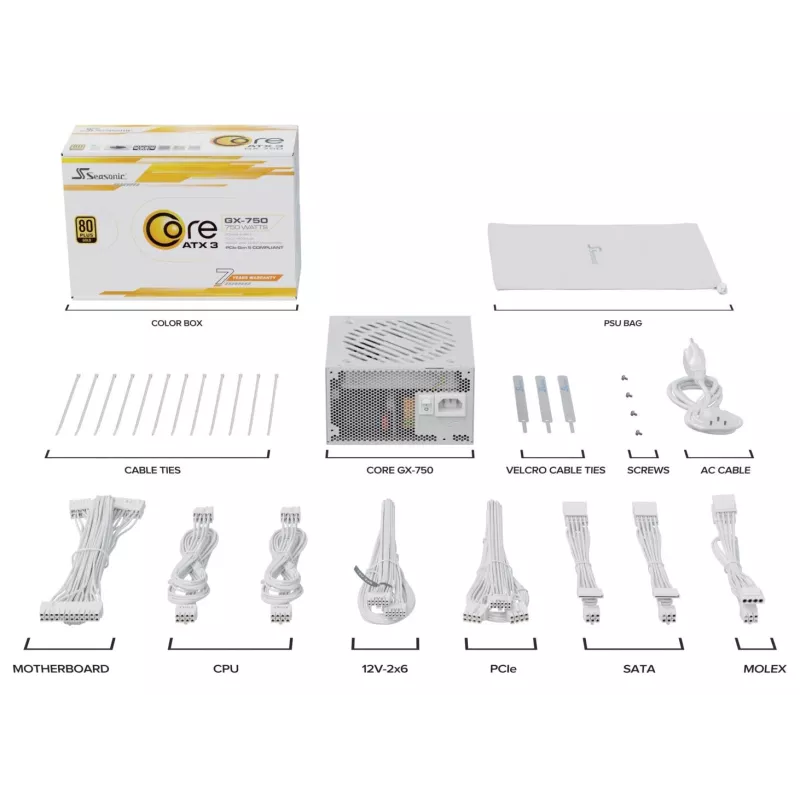 Power Supply, SEASONIC, CORE GX White, ATX, 750 W, SRP-CGX751-A5A32SF-W