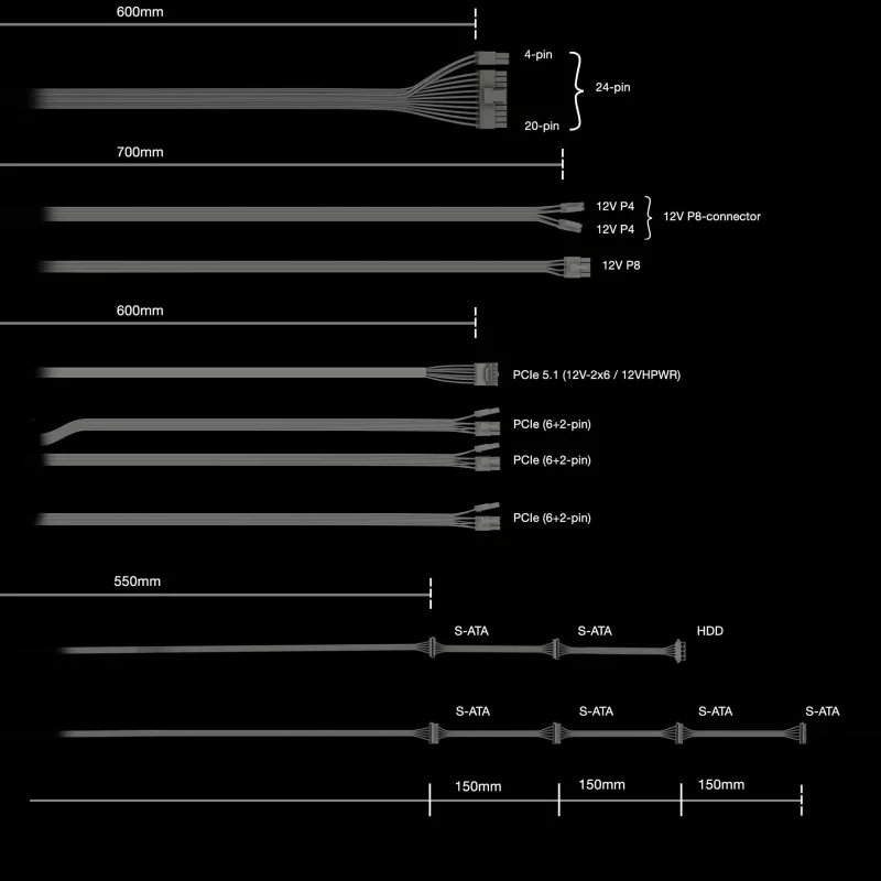 - MOTHERBOARD POWER CABLE LENGTH, MM