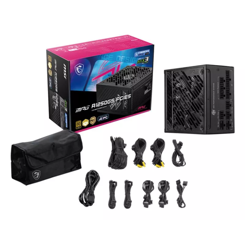 - MSI MPG A1250GS PCIE5. TOTAL POWER: 1250 W, AC INPUT VOLTAGE: 100 - 240 V, AC INPUT FREQUENCY: 50/60 HZ. MOTHERBOARD POWER CONNECTOR: 20+4 PIN ATX, MOTHERBOARD POWER CABLE LENGTH: 60 CM, CABLING TYPE: FULLY-MODULAR. PURPOSE: PC/SERVER, POWER SUPPLY UNIT (