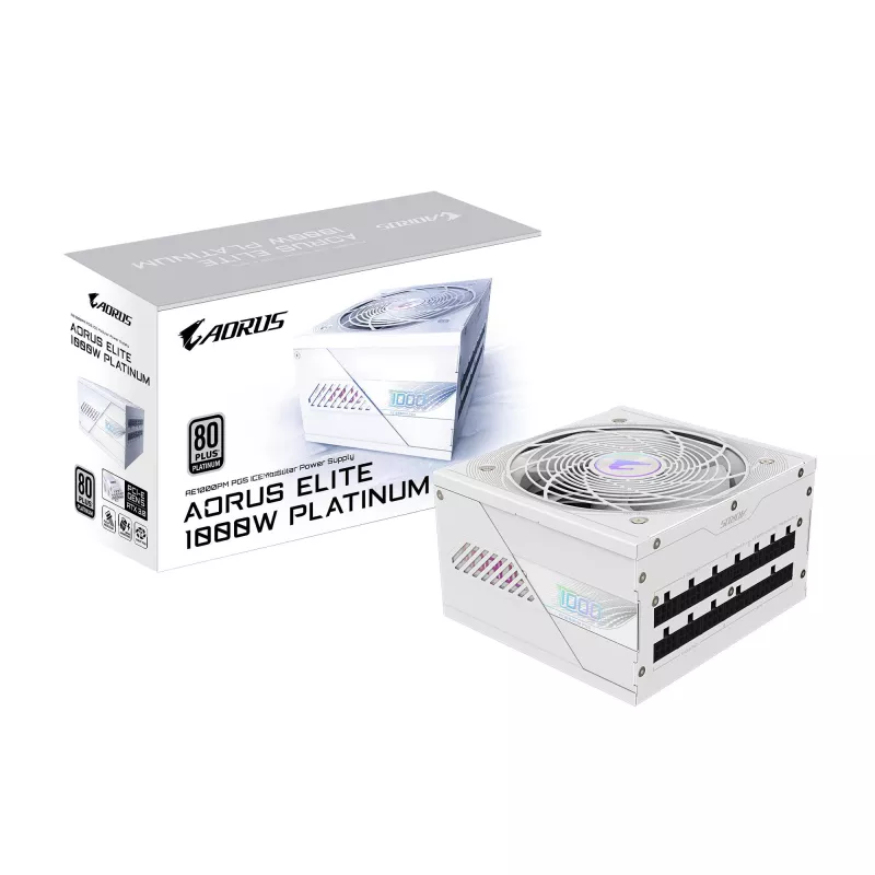- GIGABYTE AORUS ELITE P1000W ICE POWER SUPPLY UNIT - PCIE 5.0, 80 PLUS PLATINUM, FULLY MODULAR DESIGN, 120MM FAN, ATX 3.0 COMPATIBLE, EU PLUG. TOTAL POWER: 1000 W, AC INPUT VOLTAGE: 100 - 240 V, AC INPUT FREQUENCY: 50/60 HZ. MOTHERBOARD POWER CONNECTOR: 20