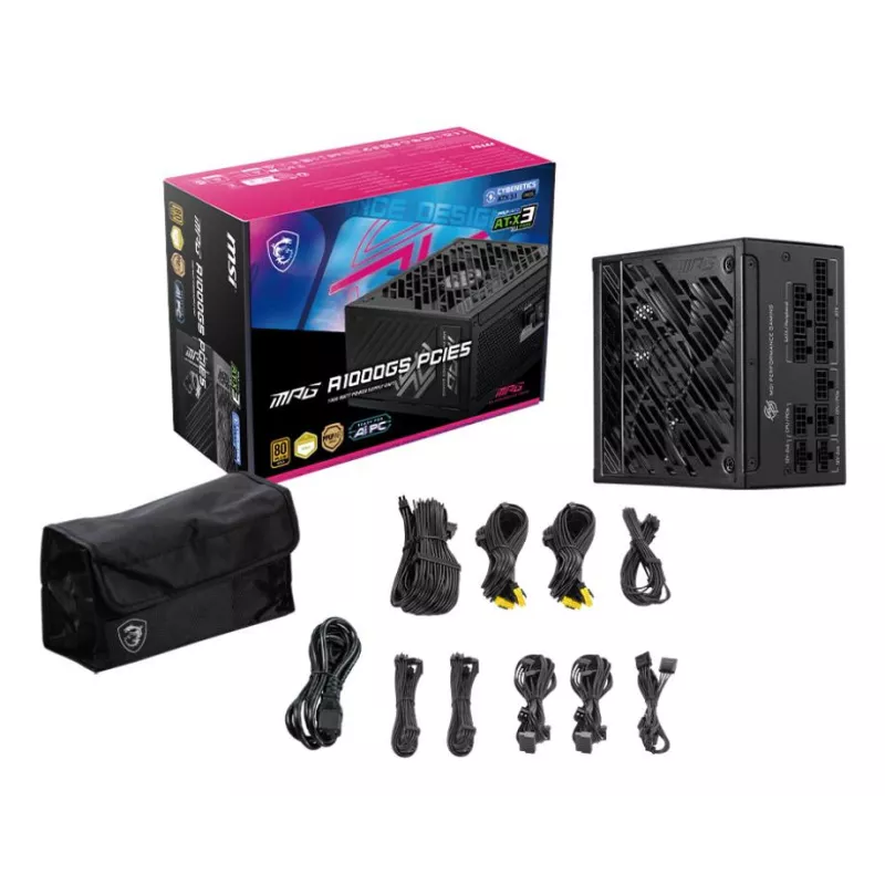 - MSI MPG A1000GS PCIE5. TOTAL POWER: 1000 W, AC INPUT VOLTAGE: 100 - 240 V, AC INPUT FREQUENCY: 50/60 HZ. MOTHERBOARD POWER CONNECTOR: 24-PIN ATX, MOTHERBOARD POWER CABLE LENGTH: 60 CM, CABLING TYPE: FULLY-MODULAR. PURPOSE: PC, POWER SUPPLY UNIT (PSU) FORM