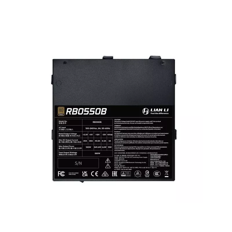 Power Supply, LIAN LI, RB PSU, ATX, 100 - 240 V, 550 W, G9P.RB0550B.B000.EU