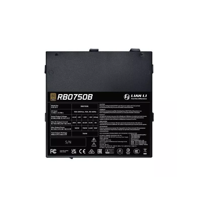Power Supply, LIAN LI, RB PSU, ATX, 100 - 240 V, 750 W, G9P.RB0750B.B000.EU