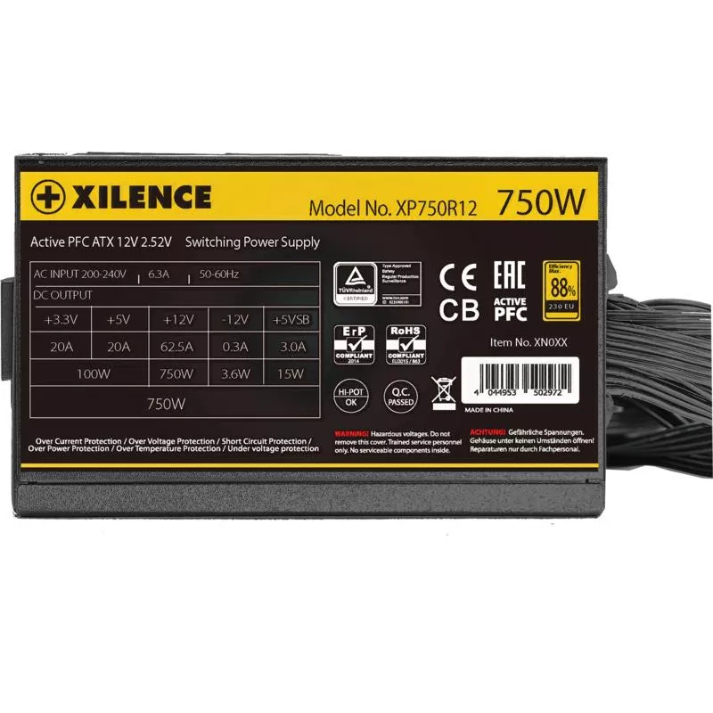 - XILENCE PERFORMANCE A+ XP750R12. TOTAL POWER: 750 W, AC INPUT VOLTAGE: 200 - 240 V, AC INPUT FREQUENCY: 50 HZ. MOTHERBOARD POWER CONNECTOR: 20+4 PIN ATX, MOTHERBOARD POWER CABLE LENGTH: 5.5 CM, CABLING TYPE: NON-MODULAR. PURPOSE: PC, POWER SUPPLY UNIT (PS