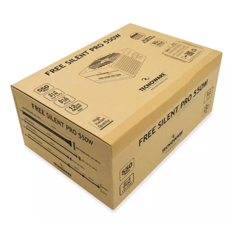 - TECNOWARE FREE SILENT PRO 550. TOTAL POWER: 550 W, AC INPUT VOLTAGE: 180 - 264 V, AC INPUT FREQUENCY: 47 - 63 HZ. MOTHERBOARD POWER CONNECTOR: 20+4 PIN ATX, MOTHERBOARD POWER CABLE LENGTH: 50 CM, PCI EXPRESS POWER CABLE LENGTH: 50 CM. PURPOSE: PC, POWER S