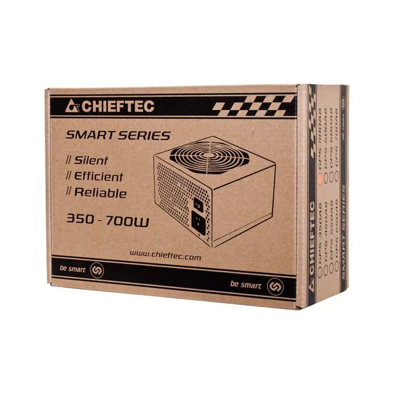 - CHIEFTEC SMART GPS-500A8. TOTAL POWER: 500 W, AC INPUT VOLTAGE: 230 V, AC INPUT FREQUENCY: 47 - 63 HZ. MOTHERBOARD POWER CONNECTOR: 20+4 PIN ATX, CABLING TYPE: NON-MODULAR. PURPOSE: PC, POWER SUPPLY UNIT (PSU) FORM FACTOR: ATX. PRODUCT COLOUR: BLACK, COOL