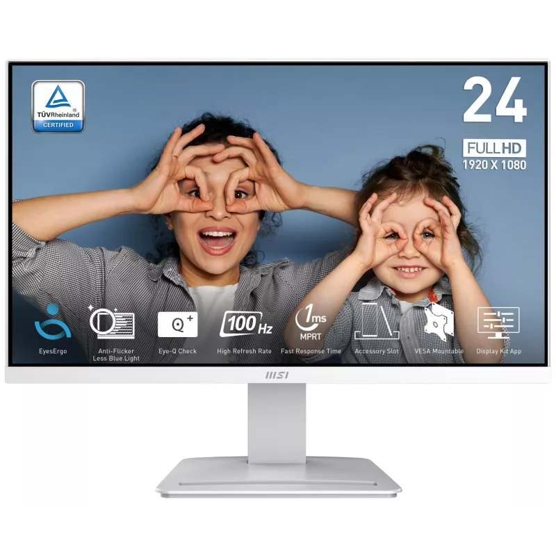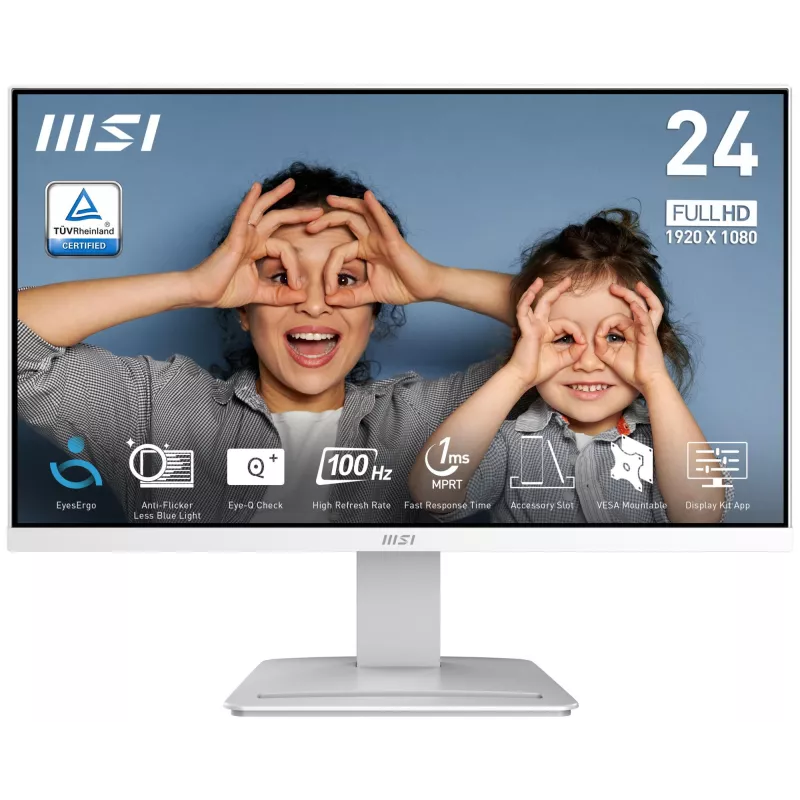 LCD Monitor, MSI, PRO MP2412W, 23.8", Business, Panel VA, 1920x1080, 16:9, 100 Hz, 1 ms, Colour White, PROMP2412W