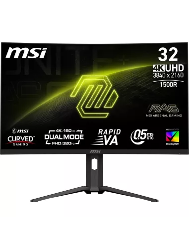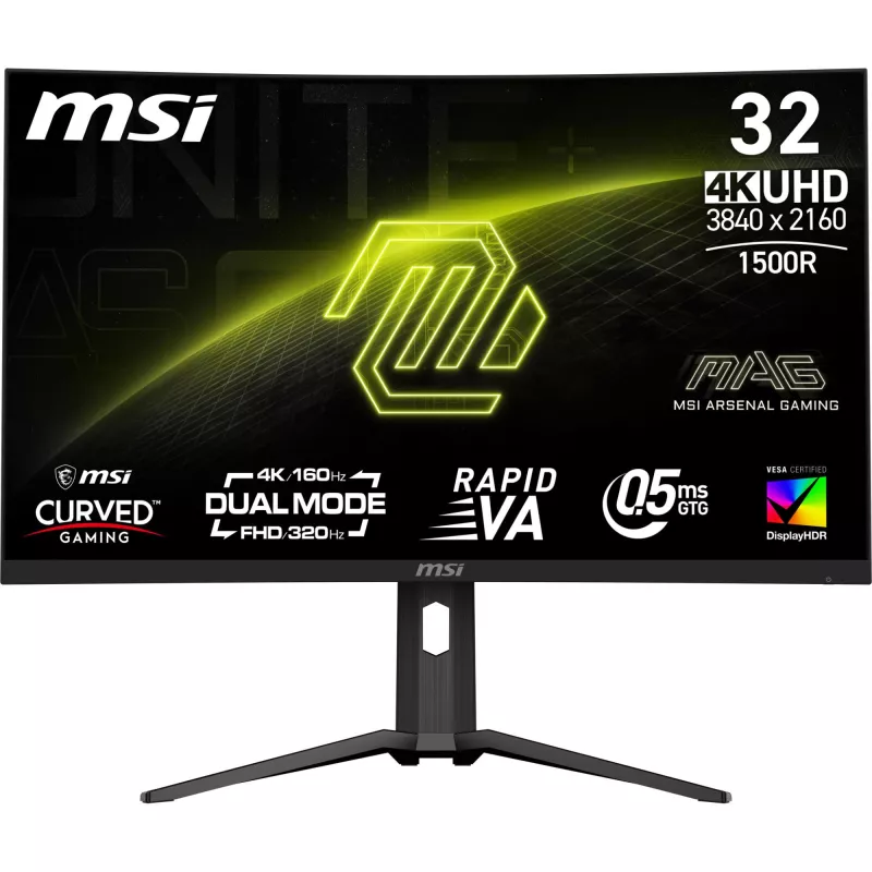 - MSI MAG 321CUPDF. DISPLAY DIAGONAL: 80 CM (31.5"), DISPLAY RESOLUTION: 3840 X 2160 PIXELS, HD TYPE: 4K ULTRA HD, DISPLAY TECHNOLOGY: LCD, RESPONSE TIME: 0.5 MS, NATIVE ASPECT RATIO: 16:9, VIEWING ANGLE, HORIZONTAL: 178 , VIEWING ANGLE, VERTICAL: 178 . VES