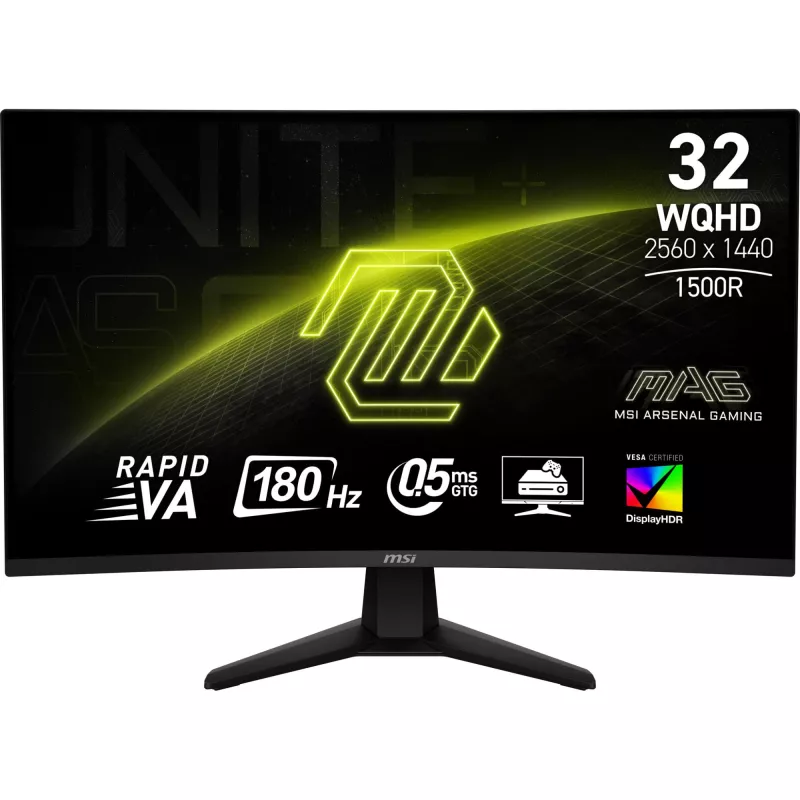 31.5 " , 2560 x 1440 pixels , Wide Quad HD , 16:9 , Rapid VA , 0.5 ms , Curved , Contrast 3500:1 , Maximum refresh rate 180 Hz , Pixel pitch 0.2724 x 0.2724 mm , 2xHDMI ports quantity , 1xDisplayPorts quantity , VESA Yes