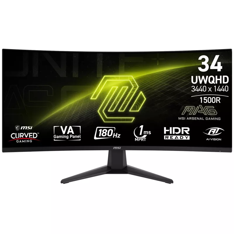 34 " , 3440 x 1440 pixels , UltraWide Dual Quad HD , 21:9 , LCD , VA , 1 ms , Curved , Contrast 4000:1 , Maximum refresh rate 180 Hz , Pixel pitch 0.23175 x 0.23175 mm , 2xHDMI ports quantity , 1xDisplayPorts quantity , Headphone out Yes , VESA Yes