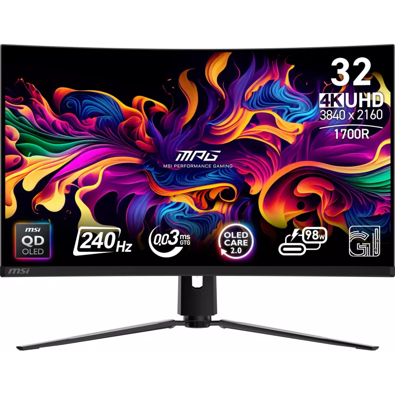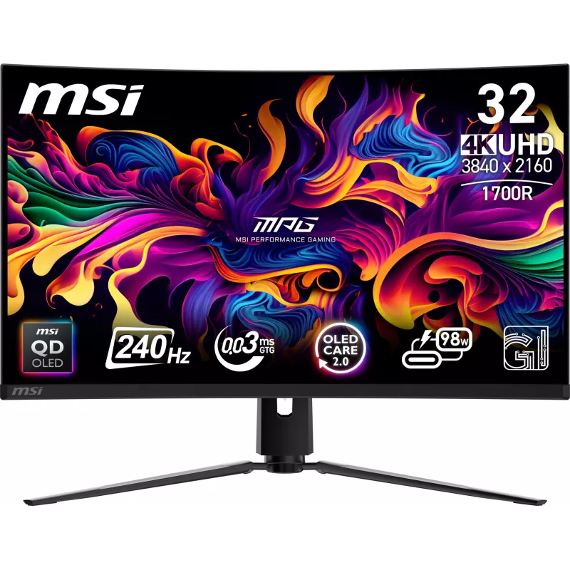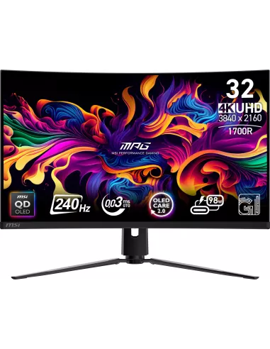 Monitor, MSI, MPG 321CURX QD-OLED, 31.5", Gaming/Curved/4K, Panel QD-OLED, 3840x2160, 16:9, 240 Hz, 0.03 ms, MPG321CURXQD-OLED