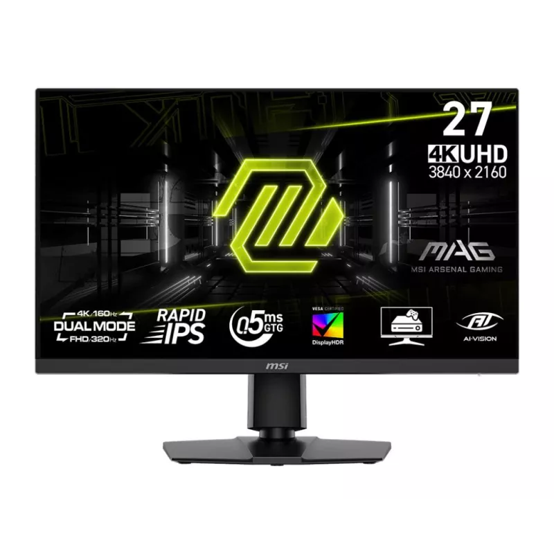 27 " , 3840 x 2160 pixels , 4K Ultra HD , 16:9 , Rapid IPS , 0.5 ms , Flat , Contrast 1000:1 , Maximum refresh rate 160 Hz , Pixel pitch 0.1554 x 0.1554 mm , 2xHDMI ports quantity , 1xDisplayPorts quantity , Headphone out Yes , VESA Yes