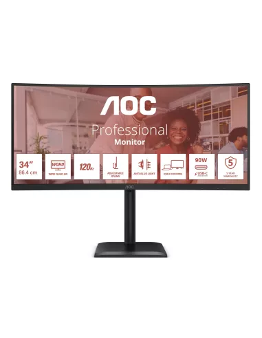 - AOC E4 CU34E4CV. DISPLAY DIAGONAL: 86.4 CM (34"), DISPLAY RESOLUTION: 3440 X 1440 PIXELS, HD TYPE: ULTRAWIDE QUAD HD, DISPLAY TECHNOLOGY: LCD, RESPONSE TIME: 4 MS, NATIVE ASPECT RATIO: 21:9, VIEWING ANGLE, HORIZONTAL: 178 , VIEWING ANGLE, VERTICAL: 178 .