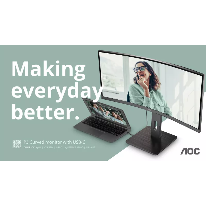 - AOC CU34P3CV. DISPLAY DIAGONAL: 86.4 CM (34"), DISPLAY RESOLUTION: 3440 X 1440 PIXELS, HD TYPE: ULTRAWIDE QUAD HD, DISPLAY TECHNOLOGY: LED, RESPONSE TIME: 4 MS, NATIVE ASPECT RATIO: 21:9, VIEWING ANGLE, HORIZONTAL: 178 , VIEWING ANGLE, VERTICAL: 178 . BUI