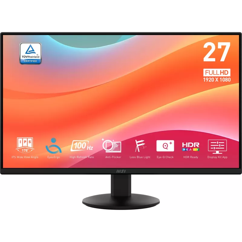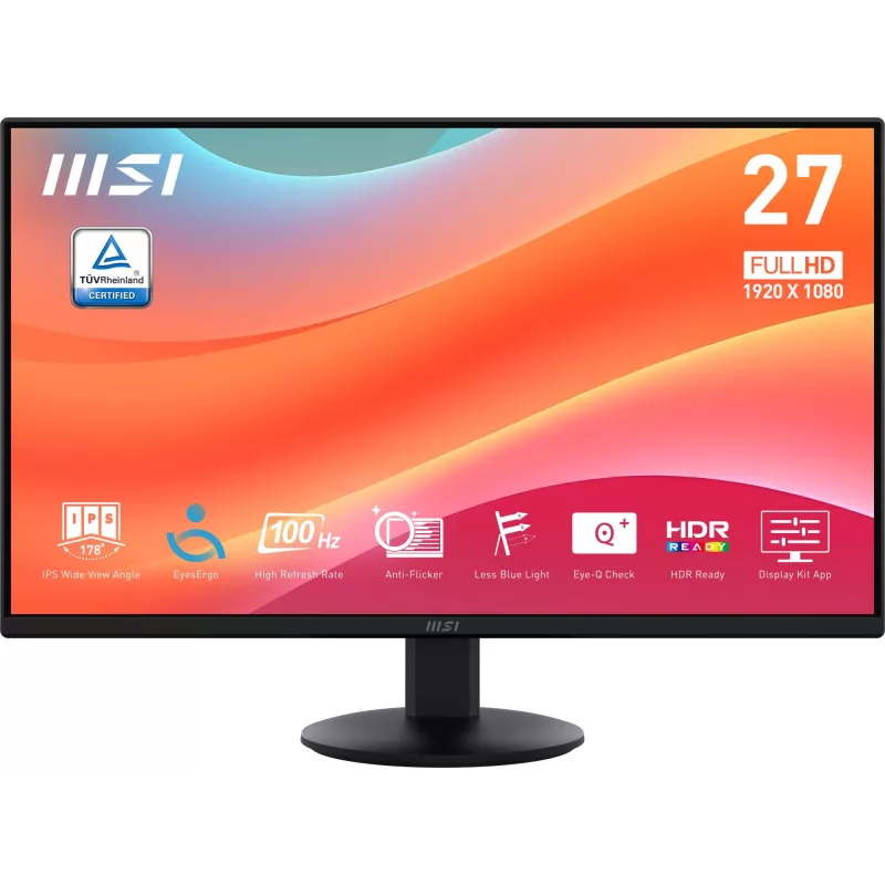 - MSI PRO MP272L. DISPLAY DIAGONAL: 68.6 CM (27"), DISPLAY RESOLUTION: 1920 X 1080 PIXELS, HD TYPE: FULL HD, DISPLAY TECHNOLOGY: LED, RESPONSE TIME: 4 MS, NATIVE ASPECT RATIO: 16:9, VIEWING ANGLE, HORIZONTAL: 178 , VIEWING ANGLE, VERTICAL: 178 . PRODUCT COL